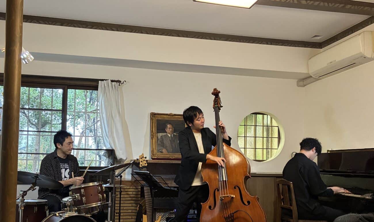 2025年、自身のリーダーライブやってました、一応…。地元である豊中市の有形文化財「原田しろあと館」で演奏してました。